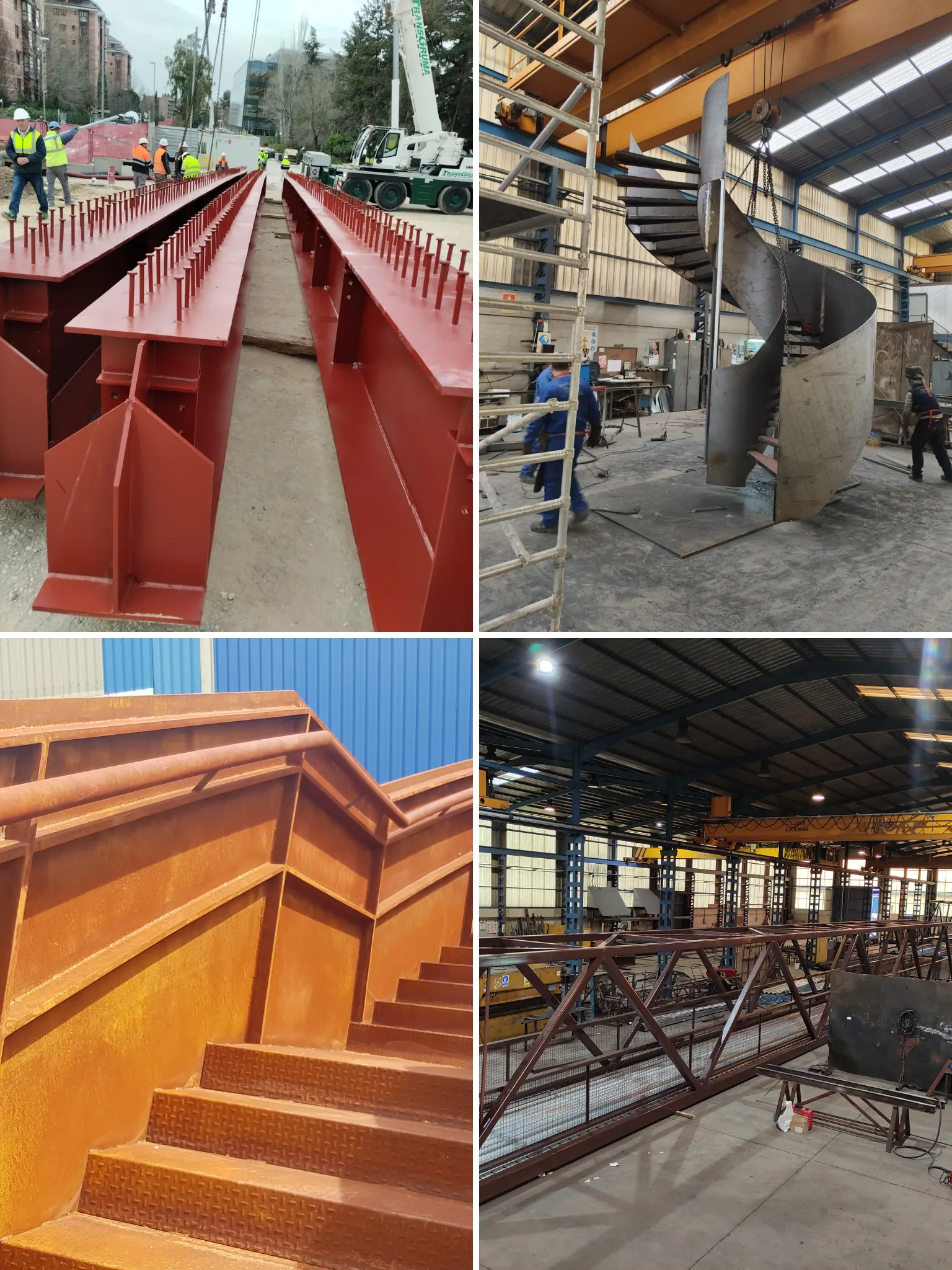 Ofrecemos a nuestros clientes una amplia gama de productos y terminaciones (acero S 275 y S 355, acero corten, fabricación de vigas armadas, granallados, imprimaciones epoxi, terminación de poliuretano, acabados en galvanizado, lacados, cromados…). Buscando generar grandes piezas en taller para facilitar y acelerar la producción en obra, habiendo sacado longitudes de hasta 36 metros y posibilidad de piezas de hasta 50 metros